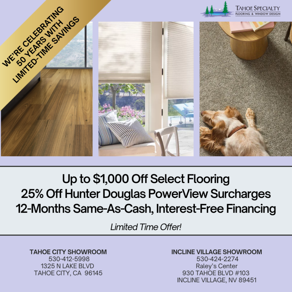 Visit our Tahoe City or Incline Village showrooms to see expert design options and start saving today